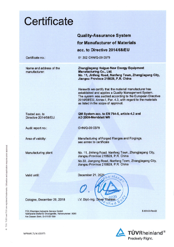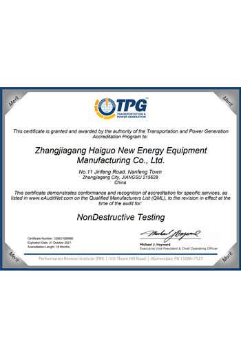 公司取得了美國ABS、法國BV、中國CCS、挪威DNVGL、韓國KR、英國LR、日本NK、意大利RINA等全球八大船級社的工廠認證證書,建立了完善的產品質量管理體系。先后獲得了美國API20B資質證書、API6A資質證書、APIQ1體系證書、TPG的NDT認證證書、TPG 熱處理認證證書、歐盟PED等認證證書,同時也通過了一些國際客戶具有高度專業要求的資格認證。